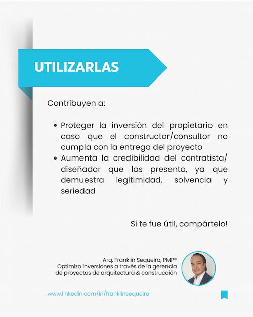 Para las obras publicas son siempre obligatorias por ley, en el sector privado no son de obligatorio cumplimiento, pero se utilizan siempre para asegurar la correcta ejecución de contratos de alto valor.